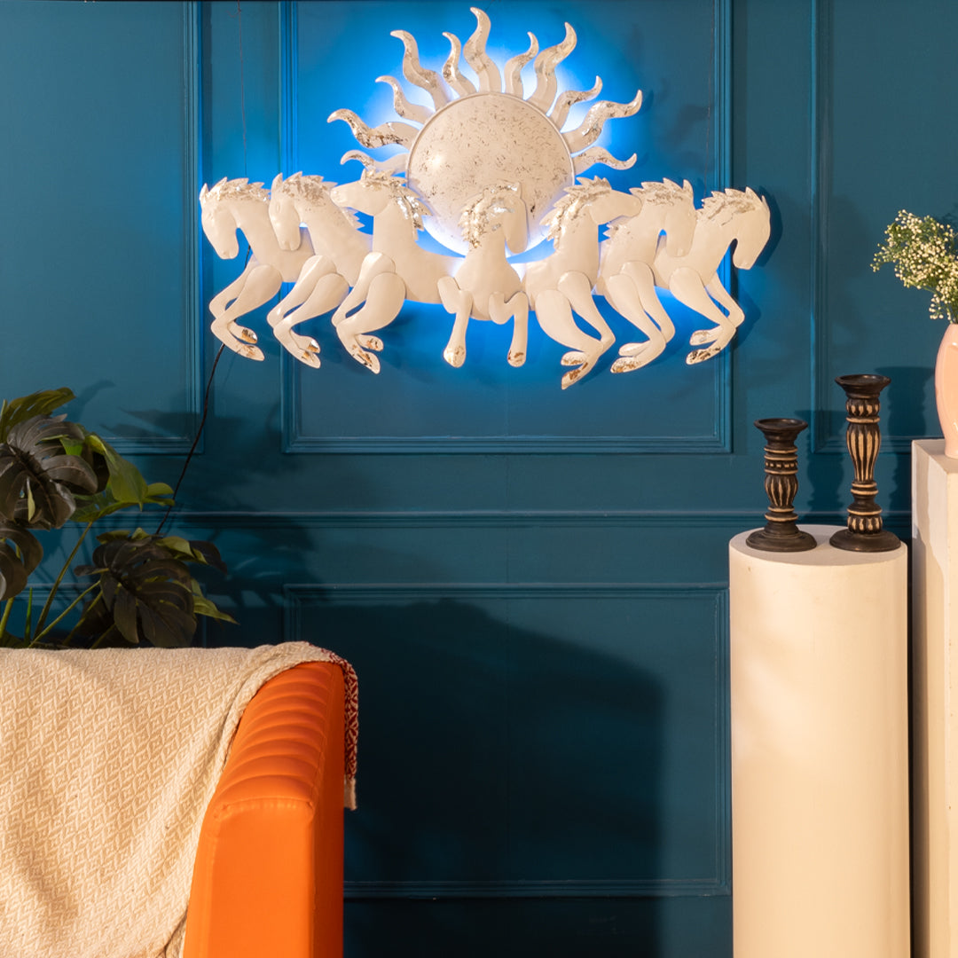 3. Functionality: The next important feature of this metal seven running horses with sunrise wall hanging decor for home decor is associated with its flexibility and functionality. The texture on the body of the horses is very practical, enhancing its style and appeal. This is perfect for both small and large living rooms and even your bedroom.