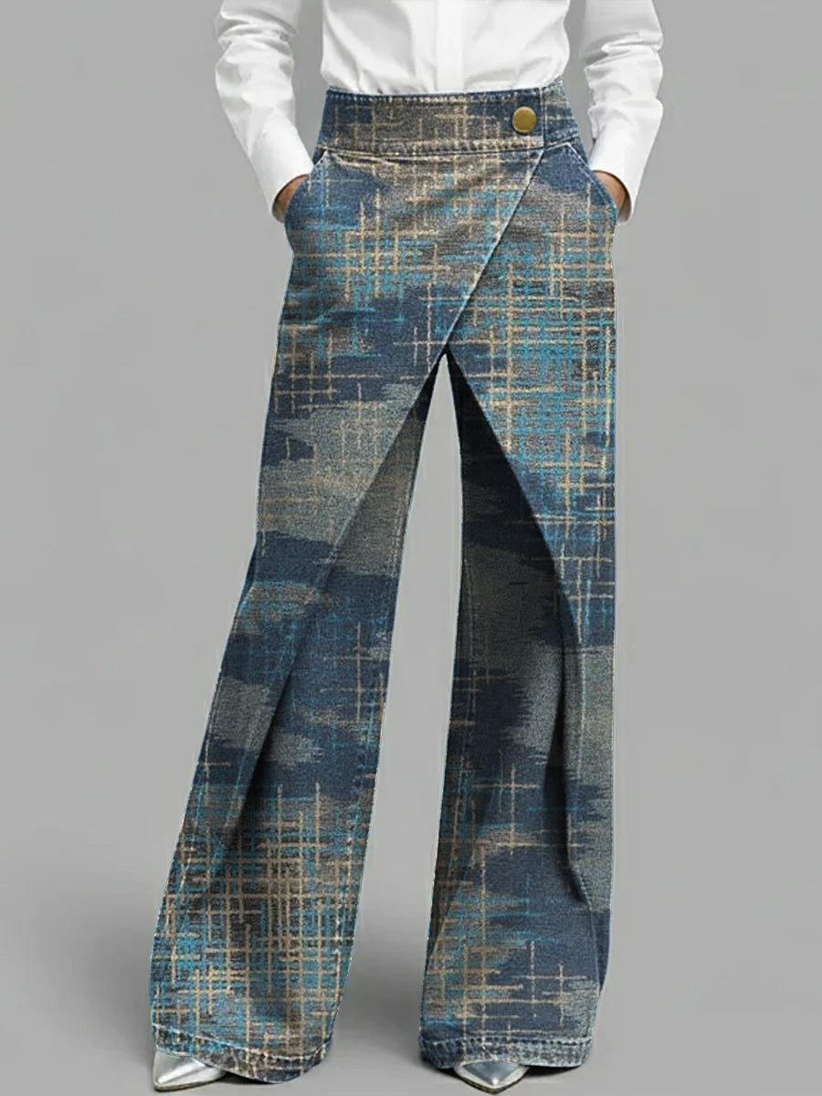 Women's Art Pattern Print High-waisted Casual Loose-fitting Wide-leg Jeans