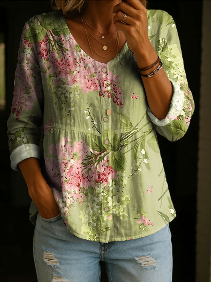Women's Floral Pattern Art Print Casual Cotton Shirt