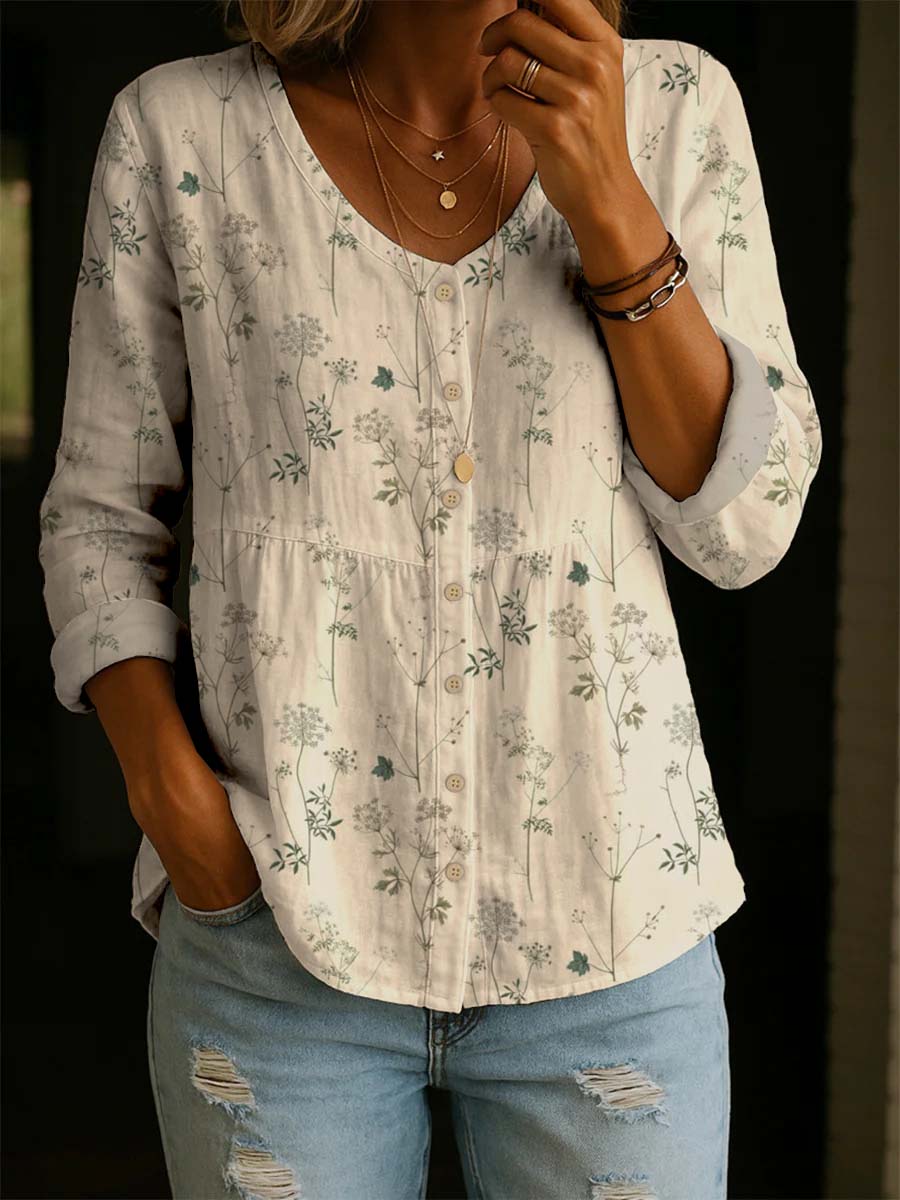 Women's Retro Minimalist Floral Print Casual Cotton Shirt