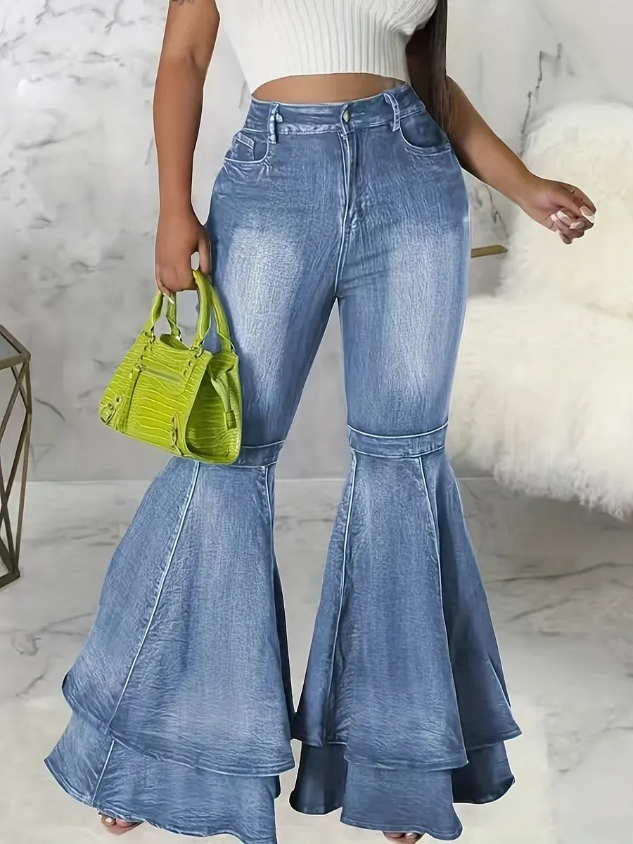 Women's Stylish Art Stretchy Double-Layer Flared Casual Denim Jeans
