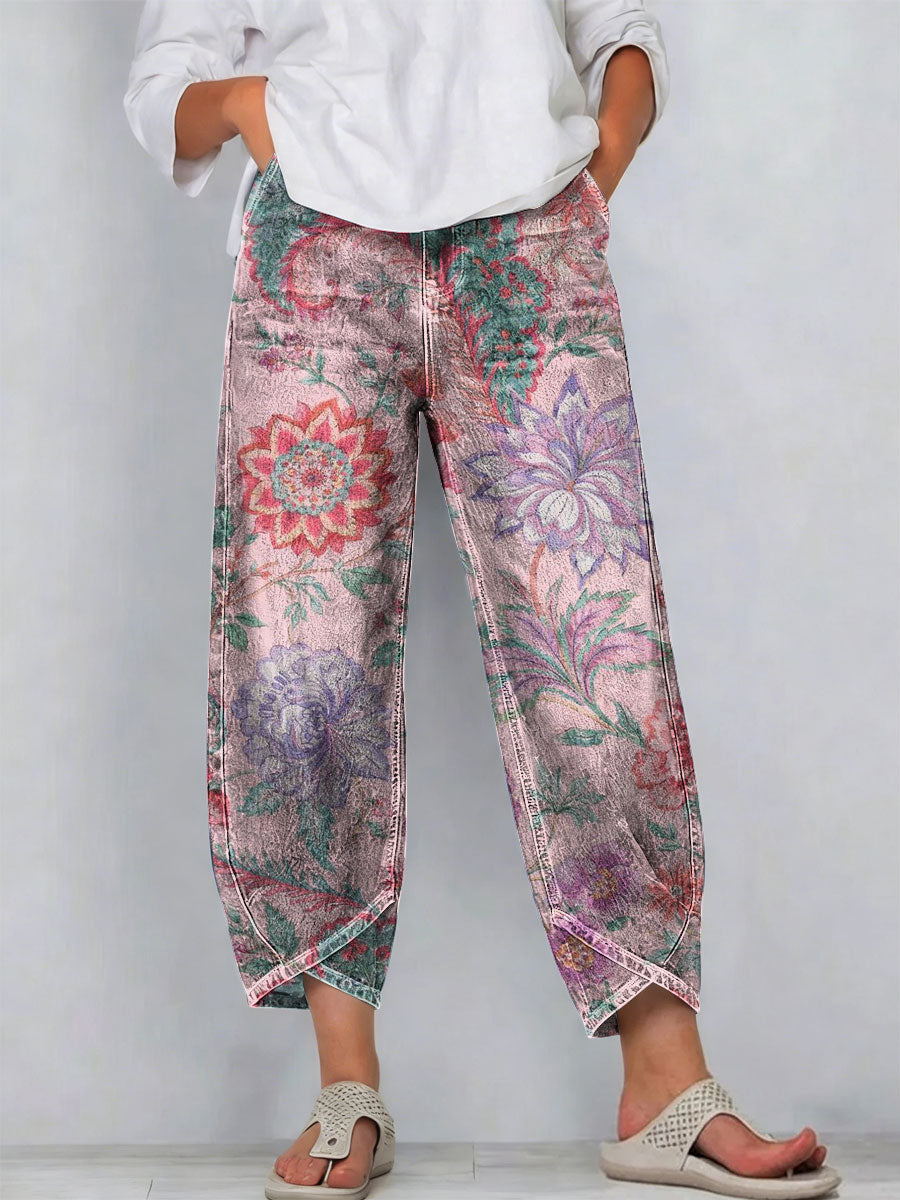 Women's Vintage Minimalist Contrasting Colors Pattern Art Prints Casual Denim Cotton Pants